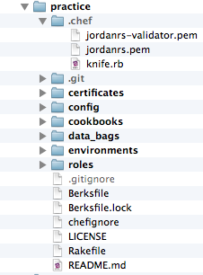 Next we need to move our .pem and knife.rb files into a .chef folder in this repository. You will most likely have to make the .chef folder.